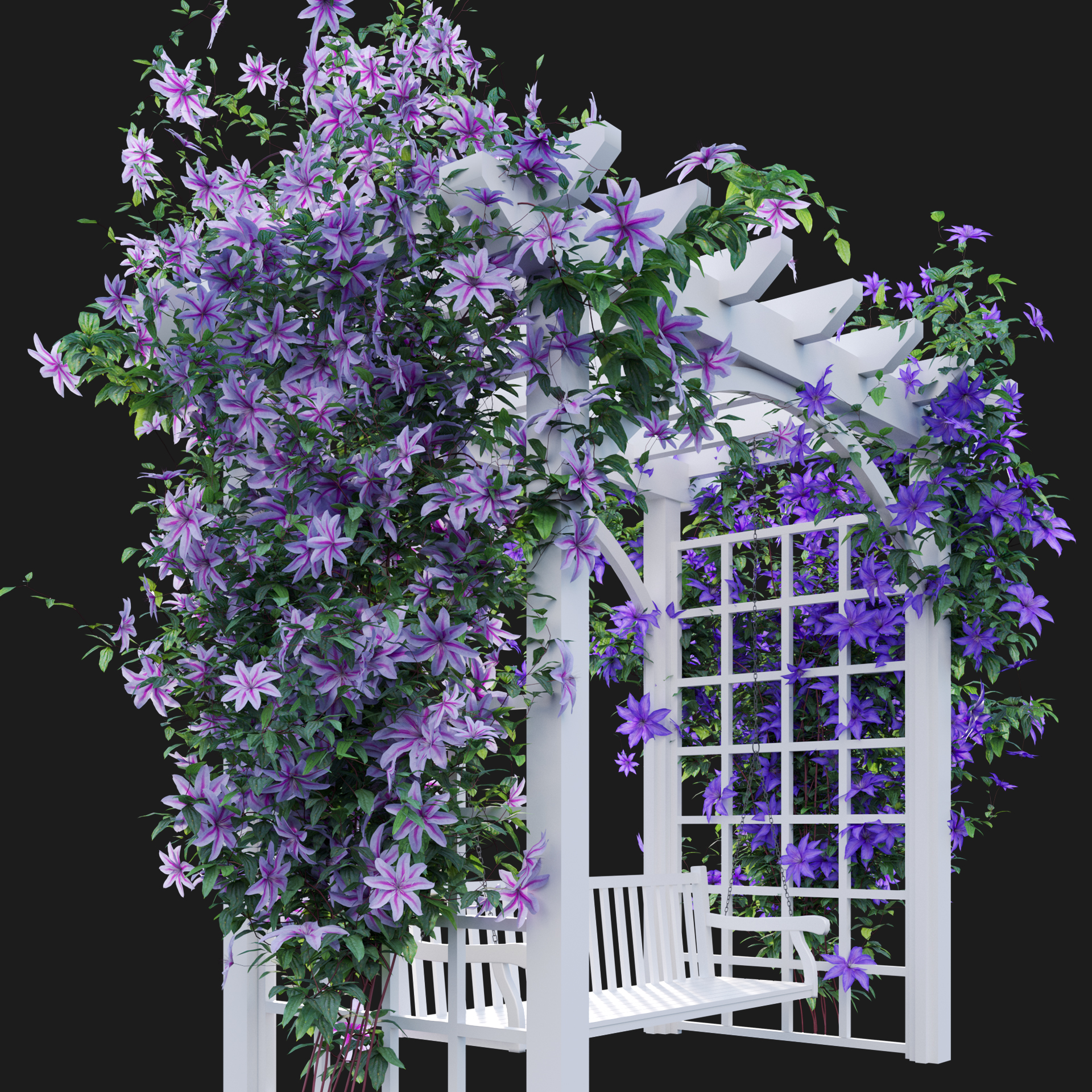 This product Clematis Aotearoa – Creeper Swing of high-quality 3D plant models. Includes many variations in growth, age and form. Therefore, It will allow you to cover all stages of growth making it a complete production solution. You can use it easily with the PBR materials. In addition, we have already set up Vray/Corona Renderer materials for 3Ds Max and GrowFX files. Our FBX format enables you to import into any software you would like to use. For example Sketchup, Lumion, Blender, Cinema 4D….Moreover, GrowFX file you can customize the number of polygons, height and form.