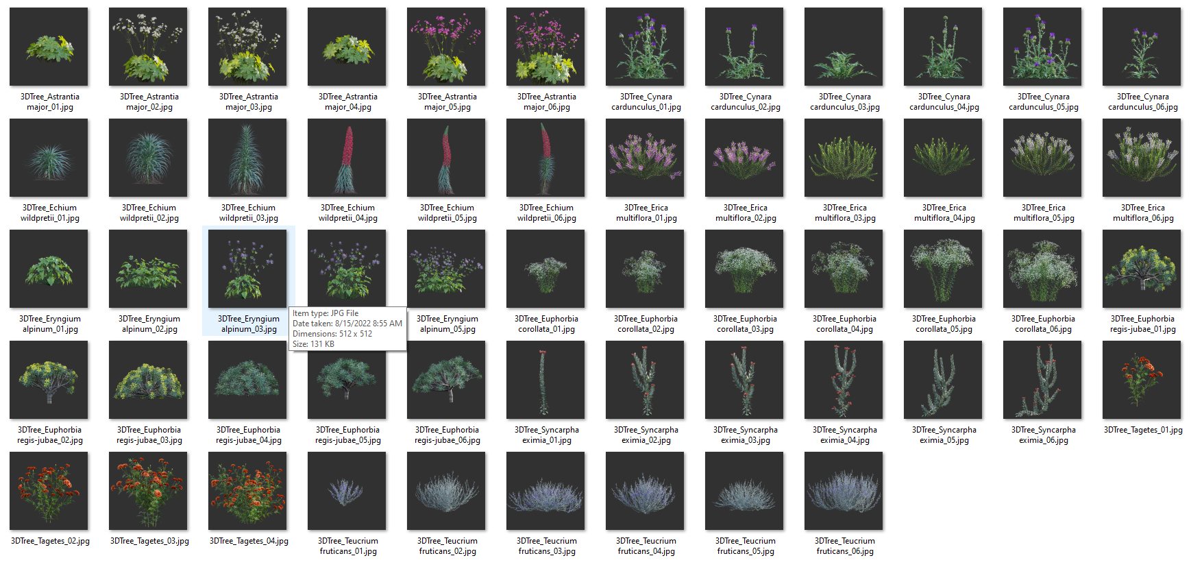 This product Collection 34 – Mediterranean Garden of high-quality 3D plant models. Includes many variations in growth, age and form. Therefore, It will allow you to cover all stages of growth making it a complete production solution. You can use it easily with the PBR materials. In addition, we have already set up Vray/Corona Renderer materials for 3Ds Max and GrowFX files. Our FBX format enables you to import into any software you would like to use. For example Sketchup, Lumion, Blender, Cinema 4D….Moreover, GrowFX file you can customize the number of polygons, height and form.