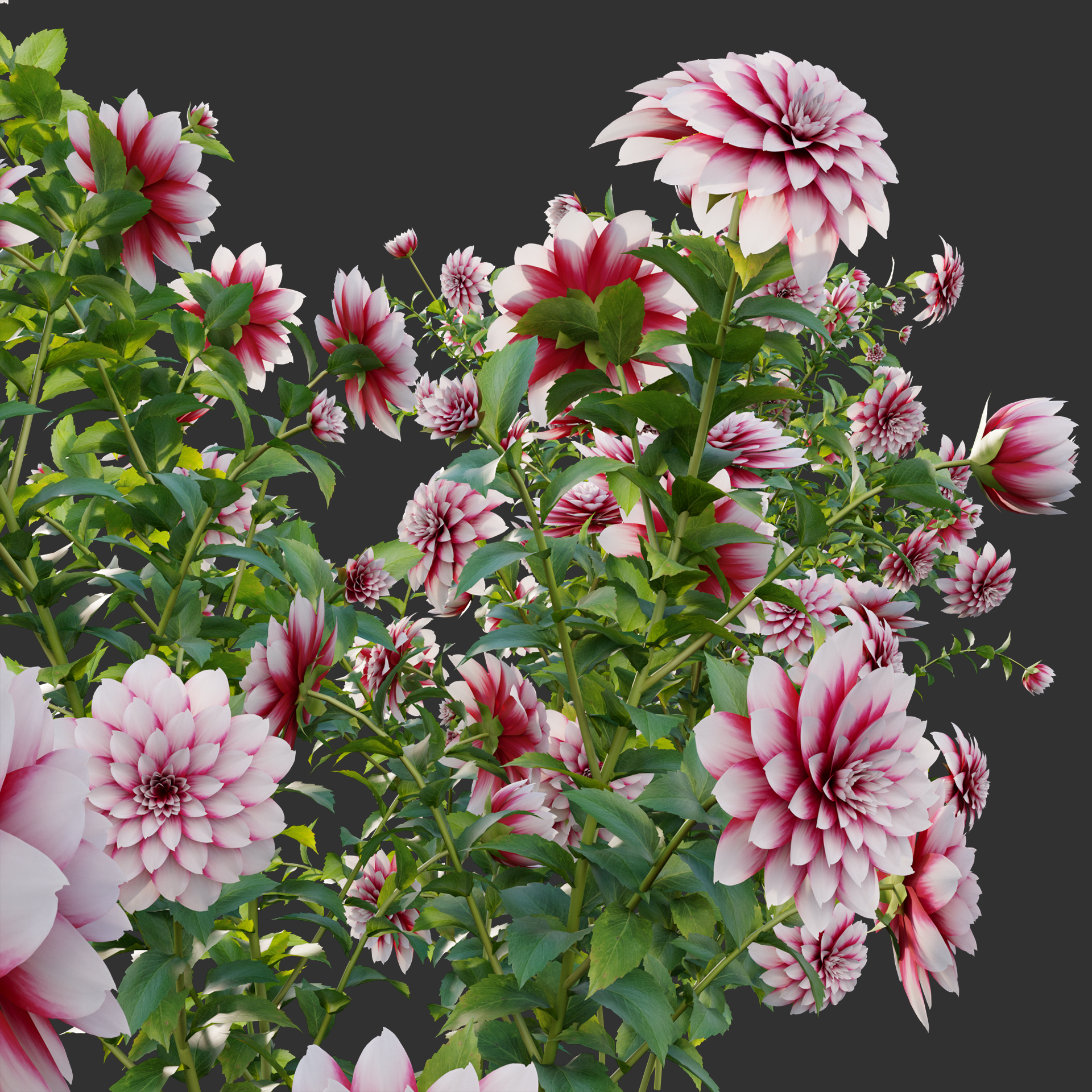 This product Dahlia flowers 02 of high-quality 3D plant models. Includes many variations in growth, age and form. Therefore, It will allow you to cover all stages of growth making it a complete production solution. You can use it easily with the PBR materials. In addition, we have already set up Vray/Corona Renderer materials for 3Ds Max and GrowFX files. Our FBX format enables you to import into any software you would like to use. For example Sketchup, Lumion, Blender, Cinema 4D….Moreover, GrowFX file you can customize the number of polygons, height and form.