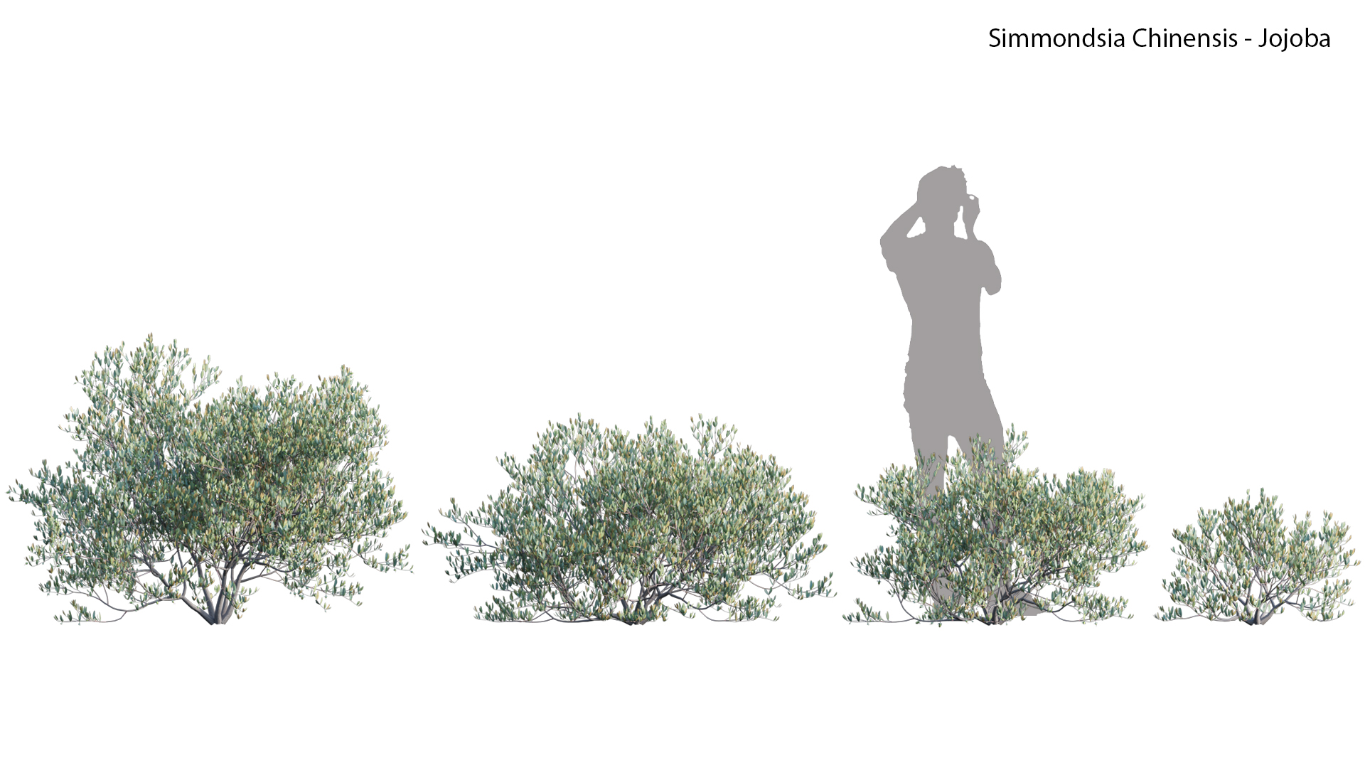 - This product Simmondsia Chinensis – Jojoba of high-quality 3D plant models. Includes many variations in growth, age and form. Therefore, It will allow you to cover all stages of growth making it a complete production solution. You can use it easily with the PBR materials. In addition, we have already set up Vray/Corona Renderer materials for 3Ds Max and GrowFX files. Our FBX format enables you to import into any software you would like to use. For example Sketchup, Lumion, Blender, Cinema 4D….Moreover, GrowFX file you can customize the number of polygons, height and form.Note, Software required for the different options.