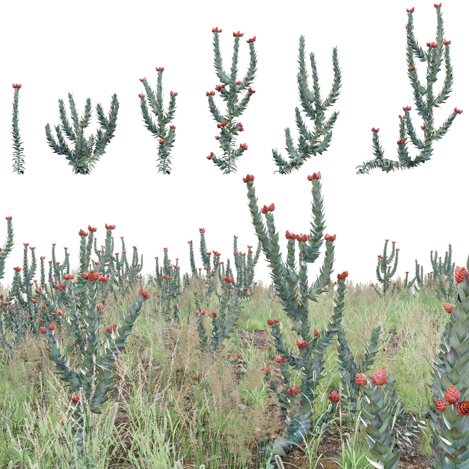 The Syncarpha eximia – Strawberry Sewejaartjie – Strawberry Everlasting product is a high-quality collection of 3D plants. It includes various variations in growth, age, and shape. This allows you to cover all stages of development, creating a complete production solution. You can easily use it with PBR materials. Additionally, we have pre-set Vray/Corona Renderer materials for 3Ds Max and GrowFX files. Our FBX format allows you to import it into any software you want to use, such as Sketchup, Lumion, Blender, Cinema 4D, and more. Furthermore, the GrowFX file allows you to customize the polygon count, height, and shape.